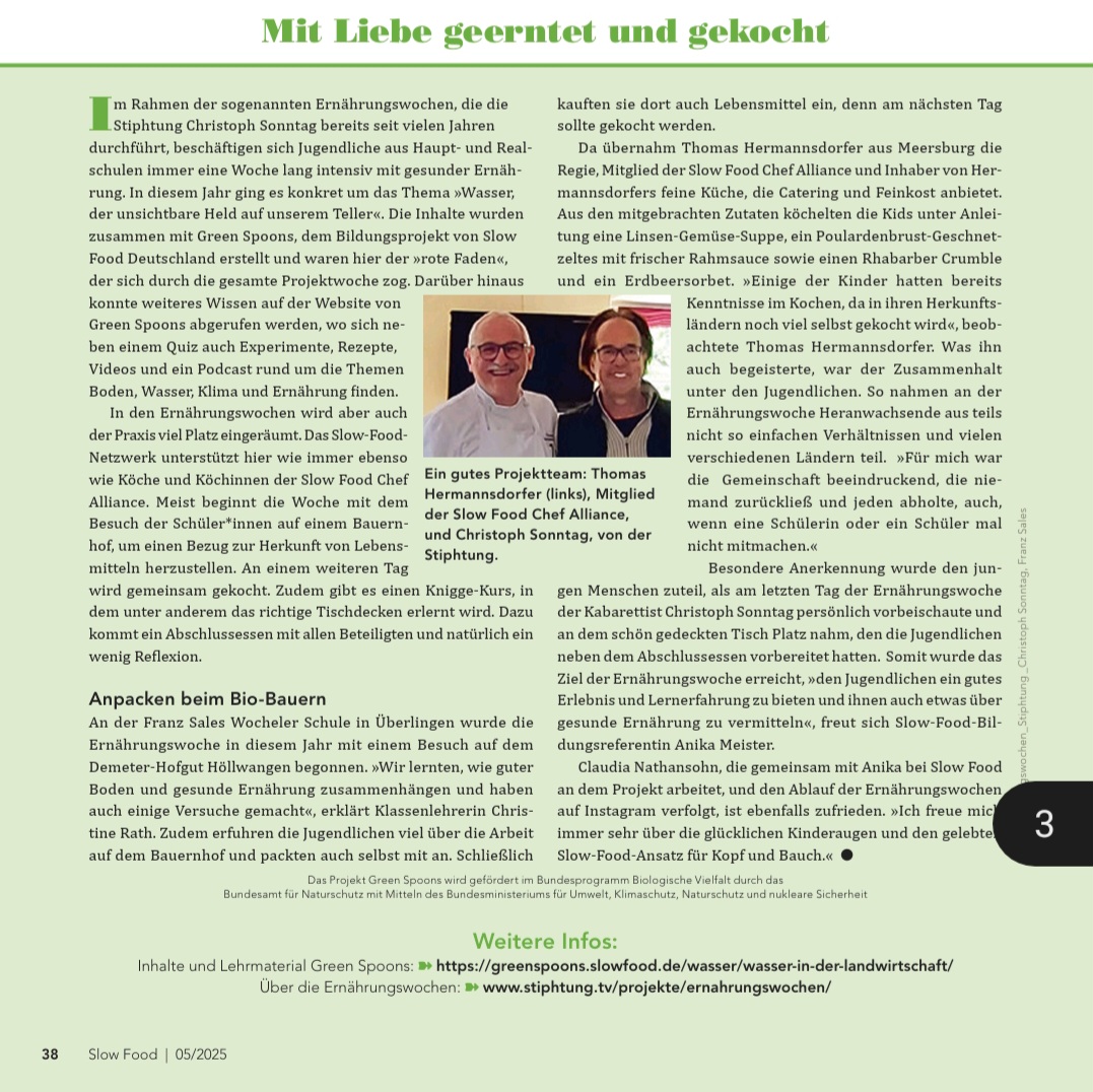 Kochkurs mit Kindern in Kooperation mit Stiphtung Sonntag, Beitrag veröffentlicht im Slow Food Magazin 6/2025, zum Lesen aufs Bild klickenUnsere MaultaschenAlgenworkshop 22.11., jetzt anmelden Alle Infos als PDF hier klicken